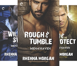 I have been thoroughly enamored by Rhenna Morgan's Men of Haven this year, and I will be very impatient about having to wait until next year to get my next Haven alpha fix. This series is premised on a group of testosterone-laden men, some with tragic pasts, who have made their own family of in a sort of alpha brotherhood. While each makes his own independent living, the brothers stick together when the going gets tough or when there is fun to be had.